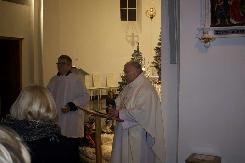 Parapijos klebonas Artūras Stanevičius kalbėjo, kad mums sušvintanti Kalėdų šviesa yra kvietimas iš naujo atrasti kuklios Betliejaus grotos naujumą, apgaubiantį žmonijos istoriją ir visą kūriniją. Šios šviesos sužavėti galime eiti su džiaugsmu ir viltimi, nes mums užgimė Išganytojas. Dievas tapo kūnu, jis tapo mūsų broliu ir visiems laikams pasilieka Dievu-su-mumis. Su tokiu džiaugsmu širdyje ir gilia padėka galime visiems nešti gerąją Dievo meilės žinią.