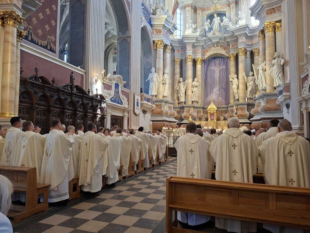 Nuoširdžiai sveikiname ir malda kasdien lydime, kad ir Jūs savo gyvenime patirtumėte malonę, tą ,,Džiaugsmo aliejų” – būti Kristaus kunigu šiandienos pasaulyje.