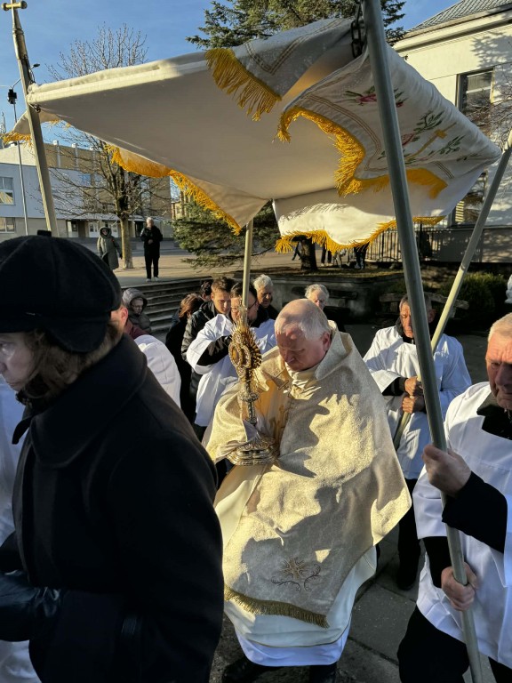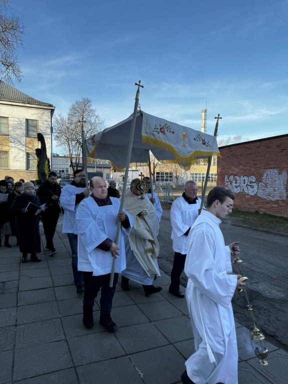 Klebonas perskaitė Kauno arkivyskupo metropolito Kęstučio Kėvalo Velykų sveikinimą.
