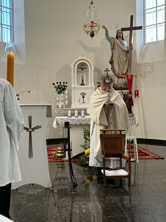 Šią dieną buvo einama tris kartus Eucharistinė procesija aplink bažnyčią.