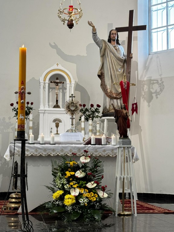 Ukmergės Švč. Trejybės parapijos klebonas Artūras Stanevičius sveikindamas susirinkusius maldininkus su Šv. Velykomis kalbėjo: