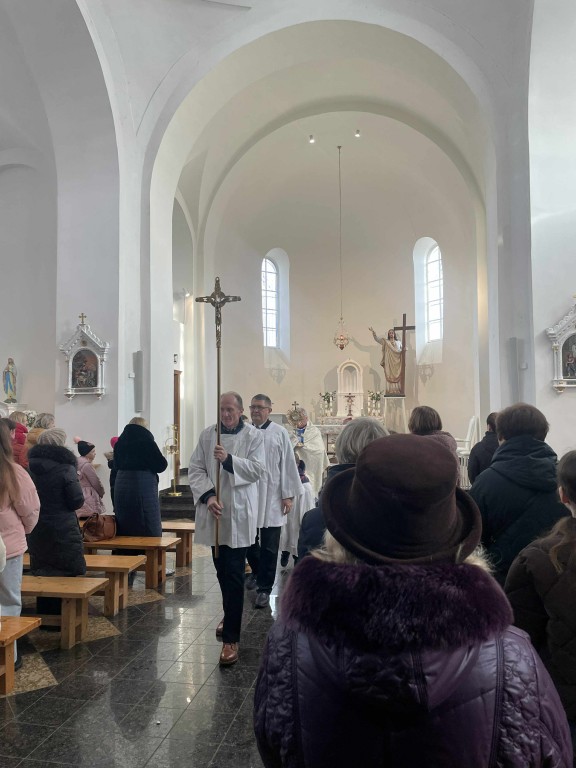Parapijos klebonas Artūras Stanevičius visus nuoširdžiai kvietė jungtis į dosnumo krepšelių pildymą, kuriuos carito savanoriai neš vienišiems, sergantiems ir kitų sunkumų patiriantiems žmonėms.
