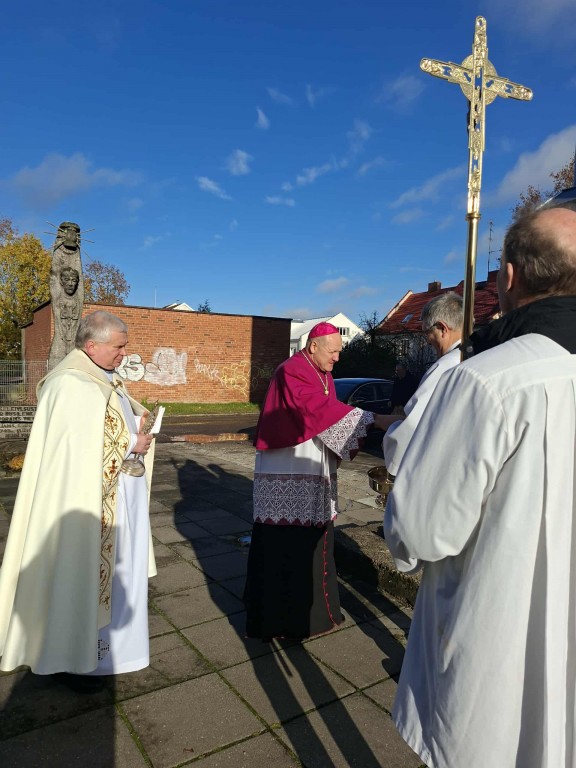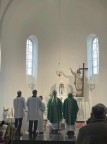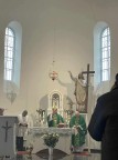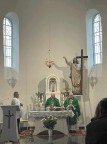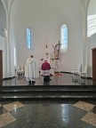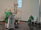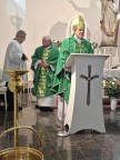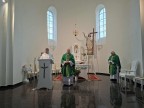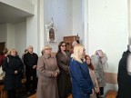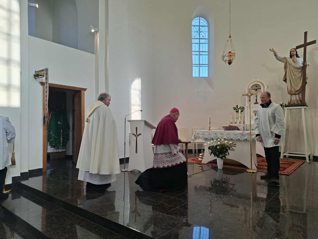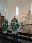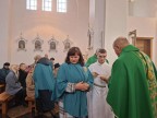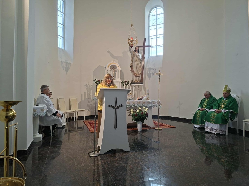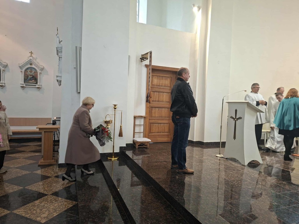 Po Šventųjų Mišių vyskupą pasveikino parapijos choro atstovai, Parapijos pastoracinės tarybos vardu Vaida Prušinskienė.