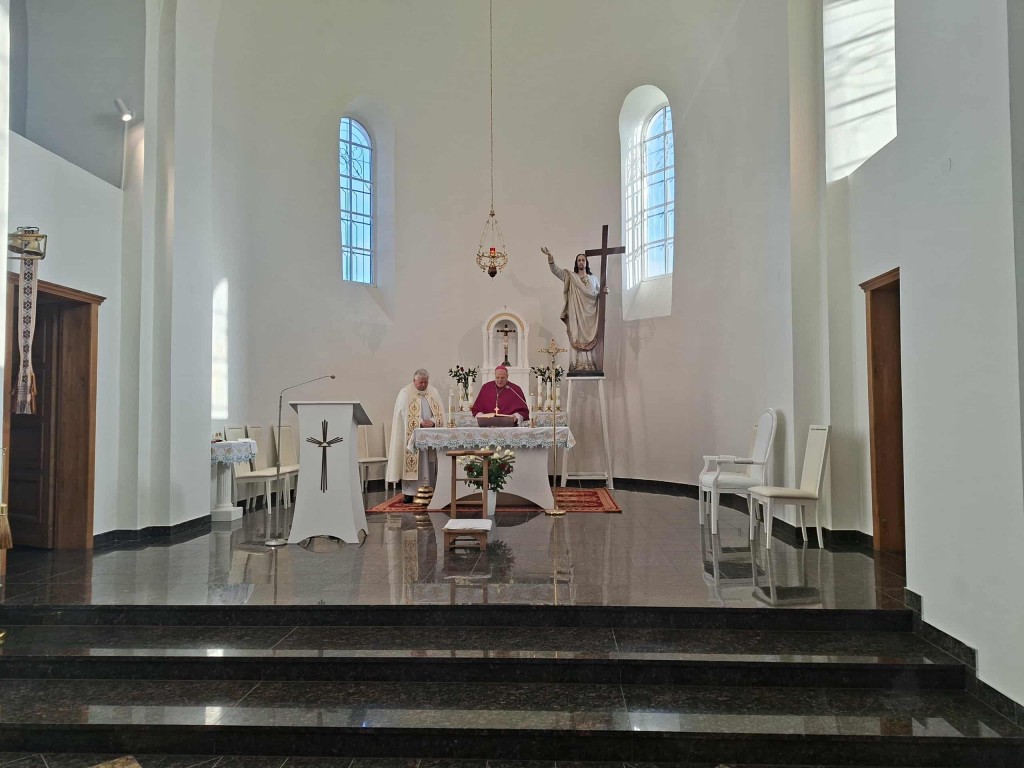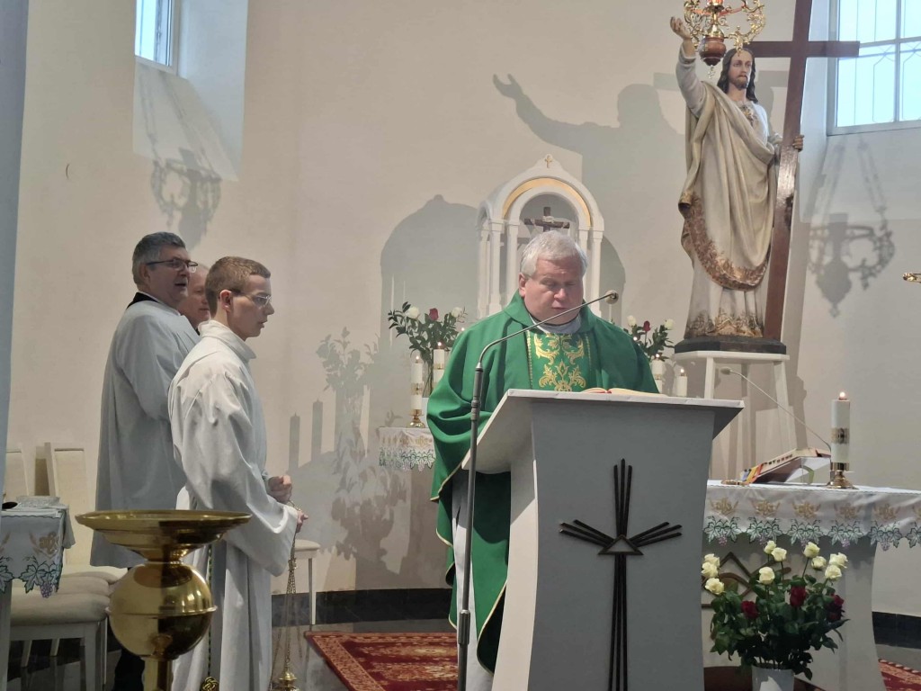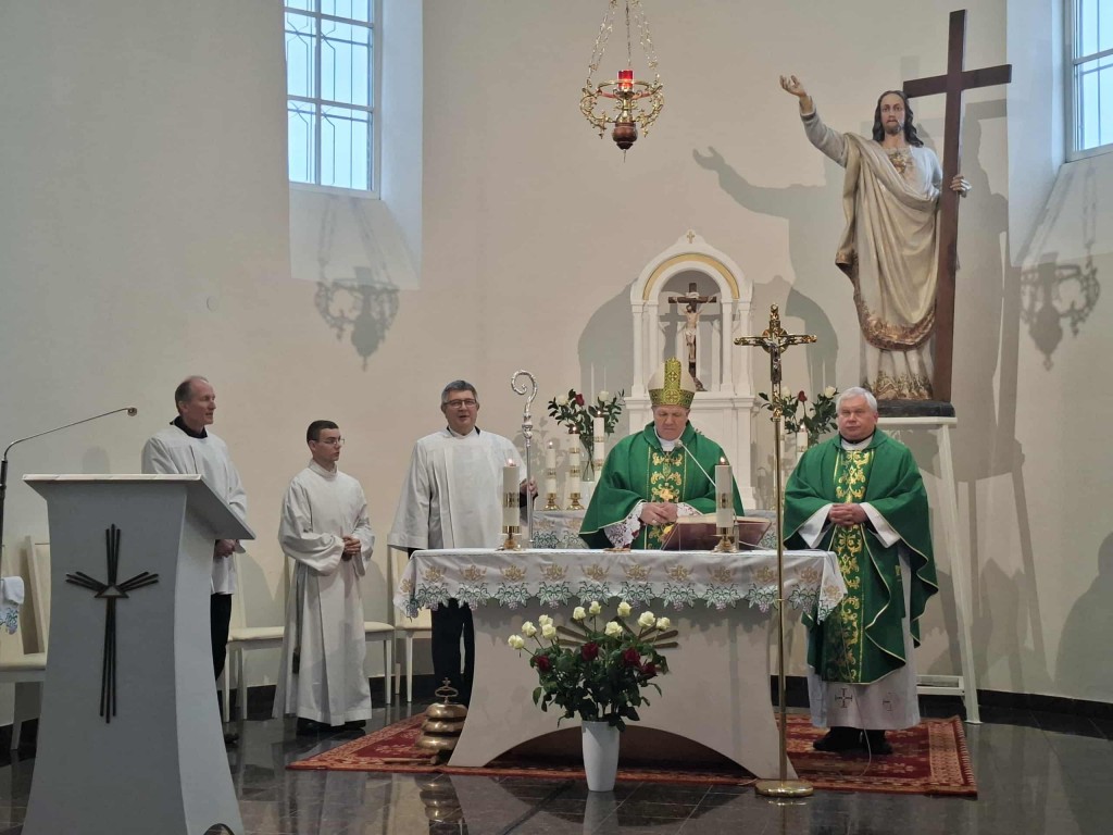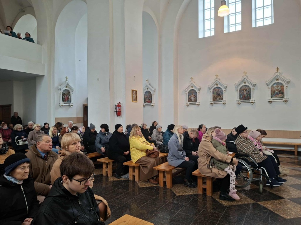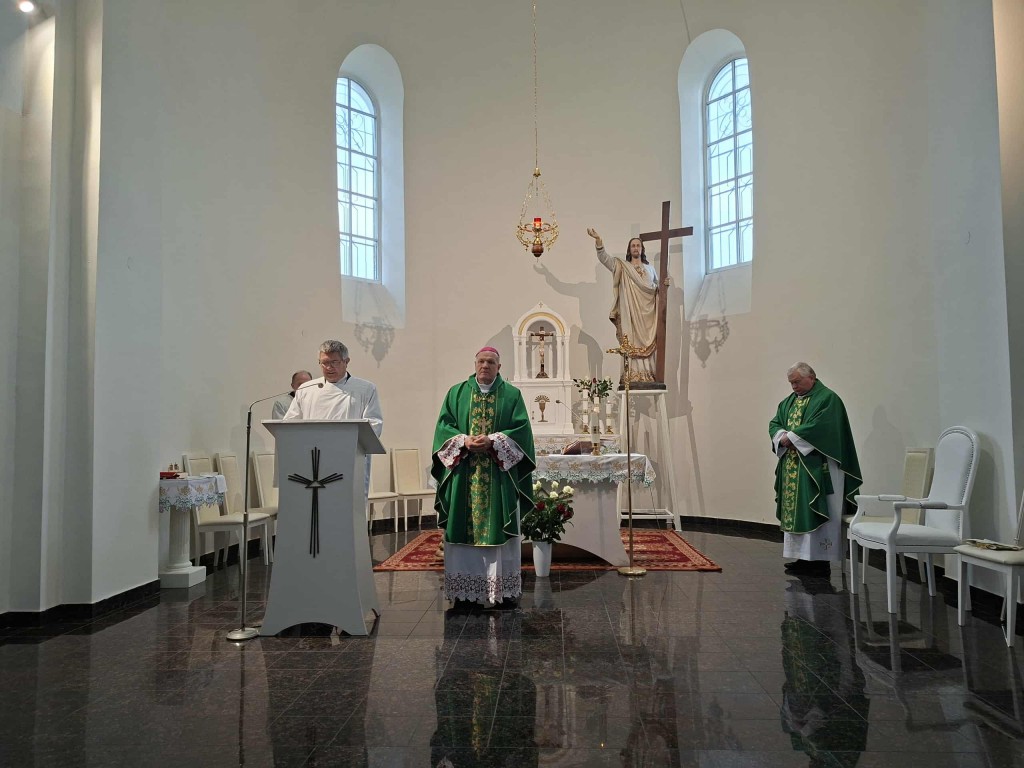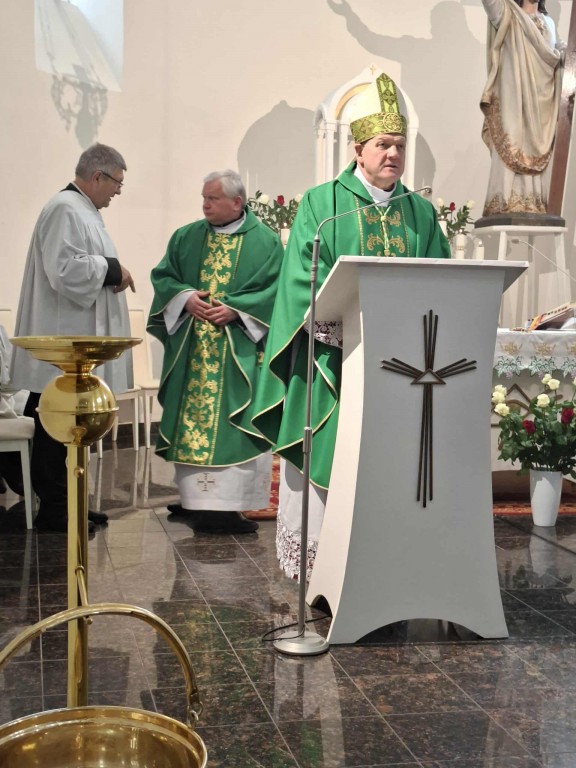 Kauno vyskupas augziliaras Saulius Bužauskas susirinkusiems maldininkams kalbėjo, kad vyskupo atvykimas į parapiją visiems primena, kad Bažnyčia yra Visuotinė ir kad mes visi priklausome didelei šeimai. Vyskupas, kaip apaštalo įpėdinis lanko įvairias vyskupijos parapijas. Vyskupai kas keli metai vyksta į Romą, susitinka su popiežiumi ir pasakoja apie mūsų Tėvynę Lietuvą. Lietuva sudaro visos Bažnyčios dalį. Dėkojame Dievui, kad turime galimybę susitikti, drauge išgyventi bendrystę ir pažinti Viešpatį Kristų. Šios Dienos skaitiniai kalba apie nuolankumą, kantrumą, apie atvirumą Dievui. Esame kviečiami būti kantrūs, kuklūs ir neniekinti kito žmogaus.