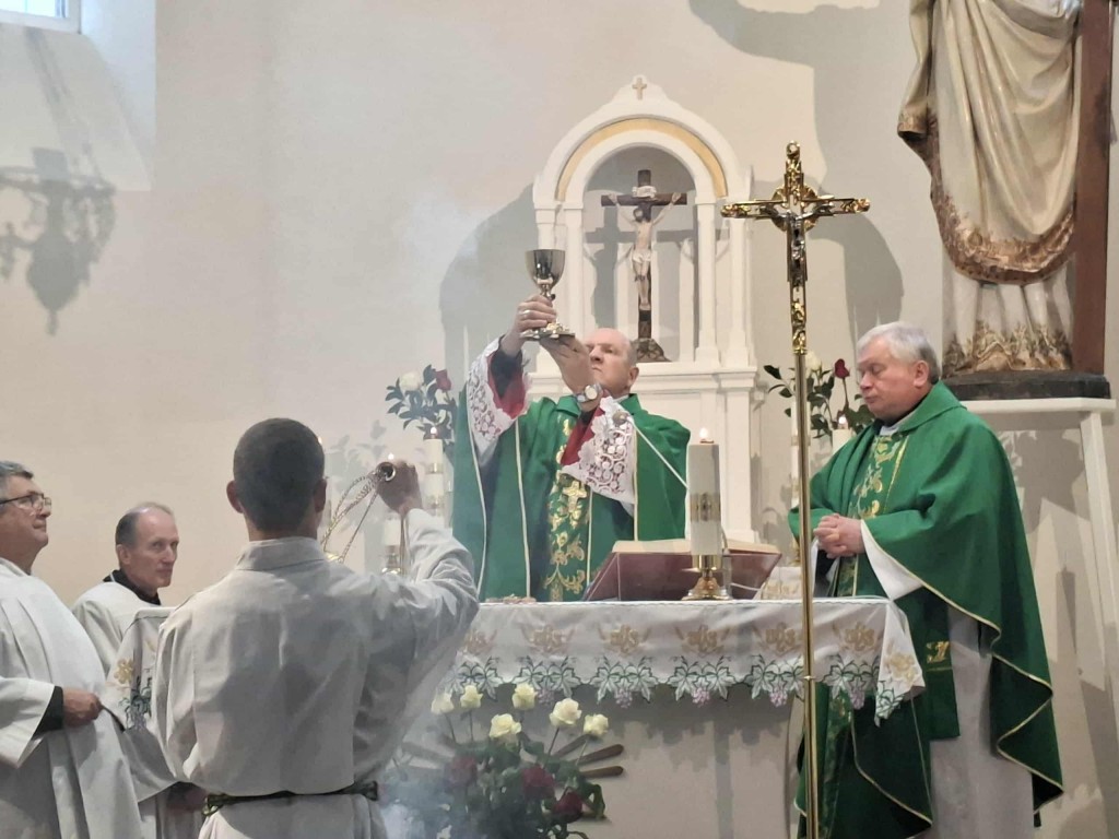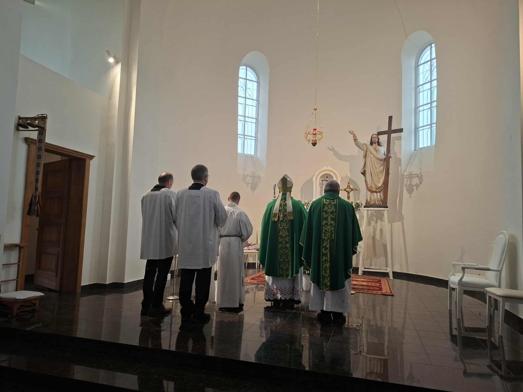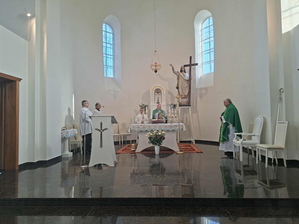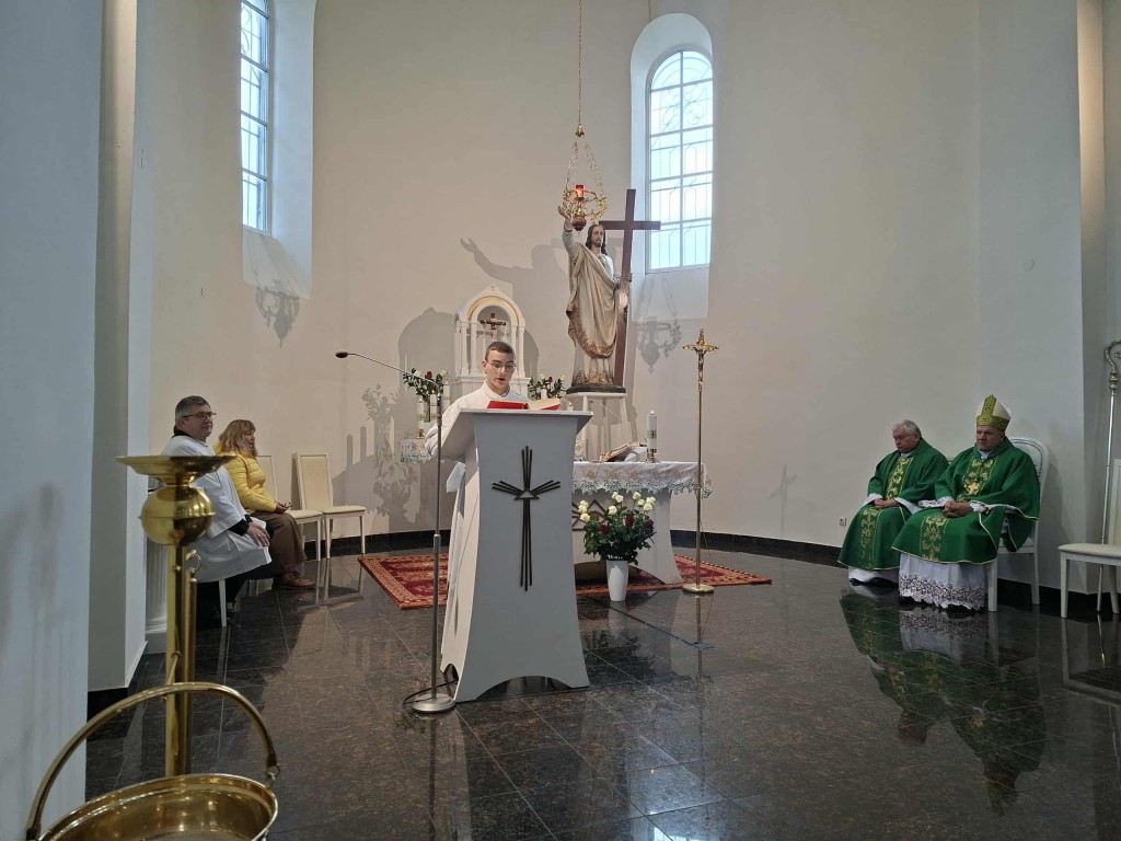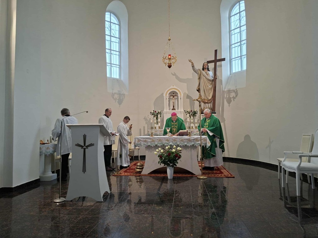 Kauno vyskupas augziliaras Saulius Bužauskas susirinkusiems maldininkams kalbėjo, kad vyskupo atvykimas į parapiją visiems primena, kad Bažnyčia yra Visuotinė ir kad mes visi priklausome didelei šeimai. Vyskupas, kaip apaštalo įpėdinis lanko įvairias vyskupijos parapijas. Vyskupai kas keli metai vyksta į Romą, susitinka su popiežiumi ir pasakoja apie mūsų Tėvynę Lietuvą. Lietuva sudaro visos Bažnyčios dalį. Dėkojame Dievui, kad turime galimybę susitikti, drauge išgyventi bendrystę ir pažinti Viešpatį Kristų. Šios Dienos skaitiniai kalba apie nuolankumą, kantrumą, apie atvirumą Dievui. Esame kviečiami būti kantrūs, kuklūs ir neniekinti kito žmogaus.